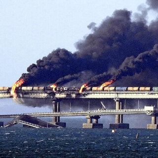 炎上中のクリミア大橋 読売新聞オンラインより
