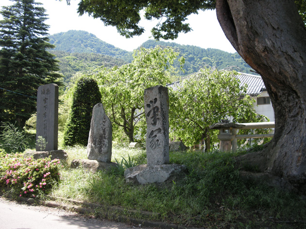 しばらく行くと、趣(おもむき)のある場所に出ます。石碑などがある。